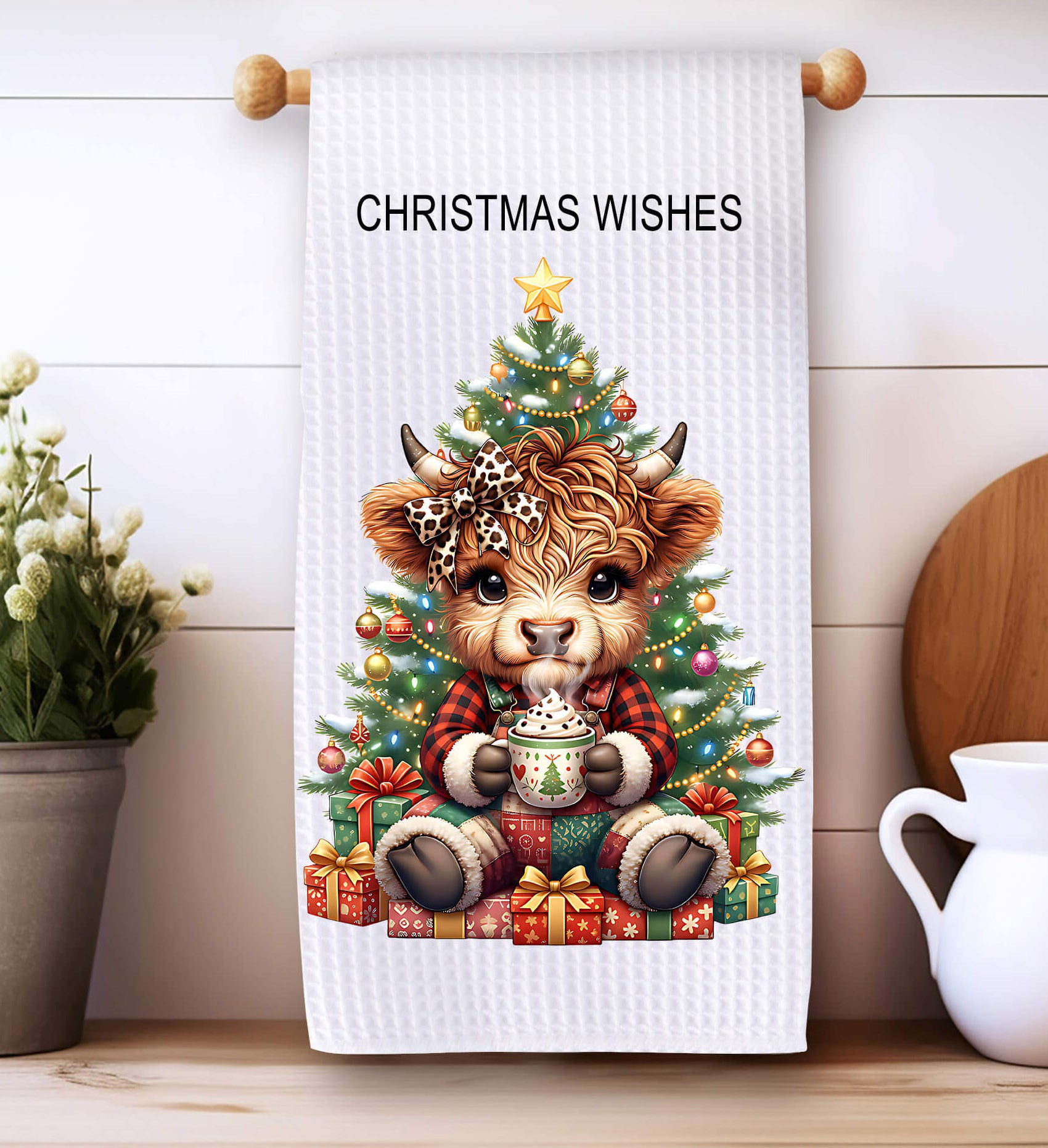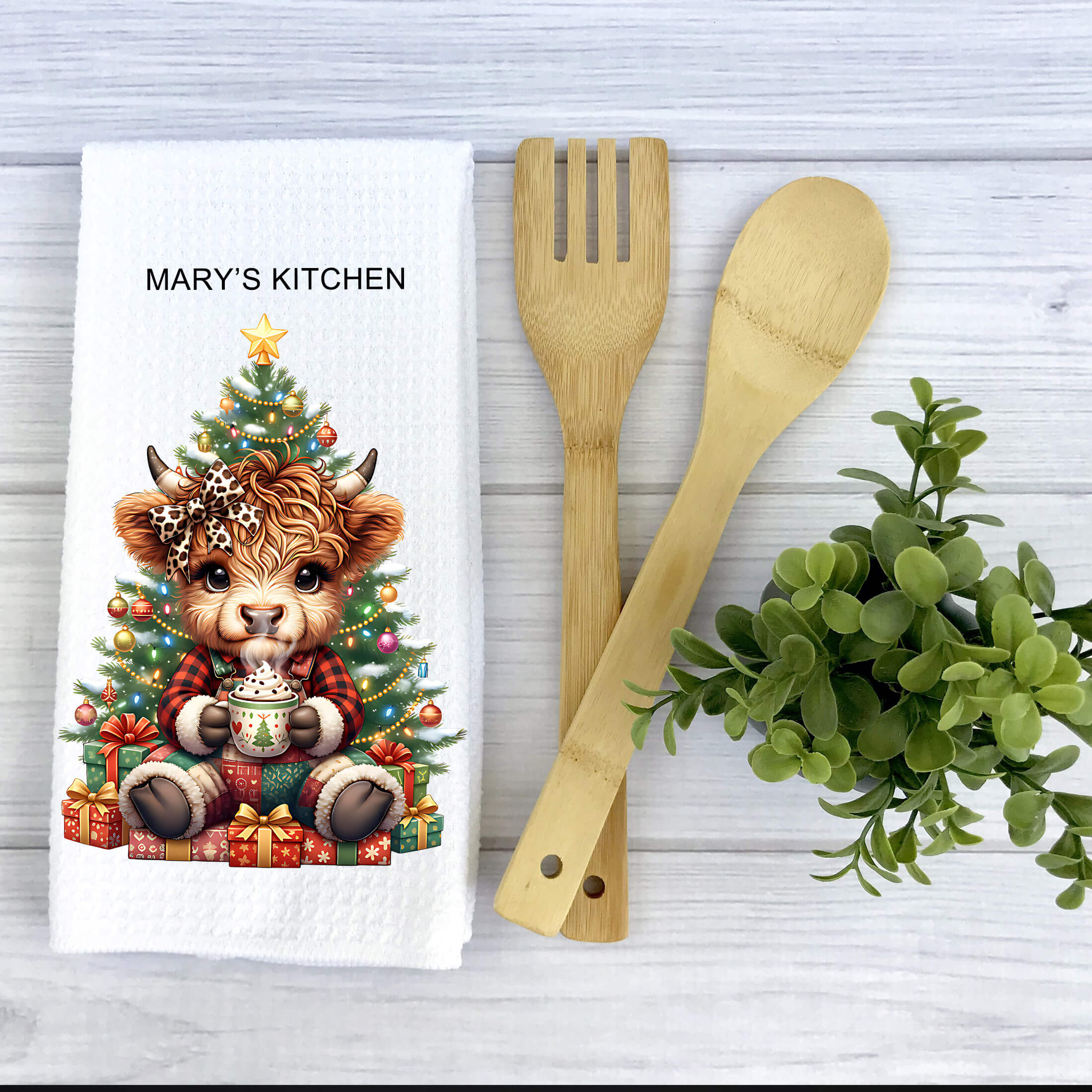 Celebrate the season and add charm to your kitchen with this personalized cozy highland cow waffle weave kitchen towel / dish towel. Perfect for farmhouse kitchens, holiday baking décor, or gifting to loved ones. Made from soft, absorbent microfiber waffle weave fabric — practical, decorative, and festive.