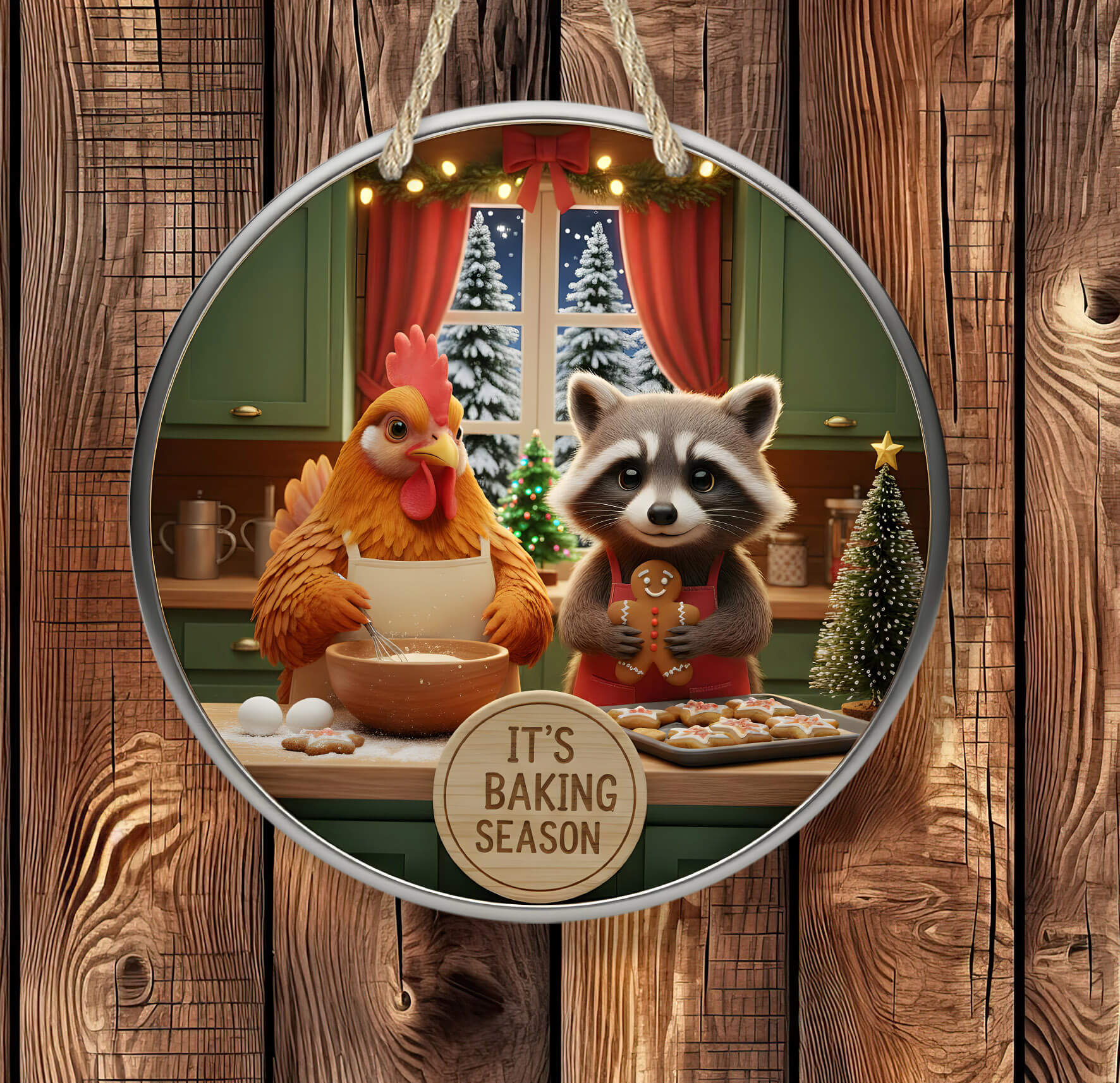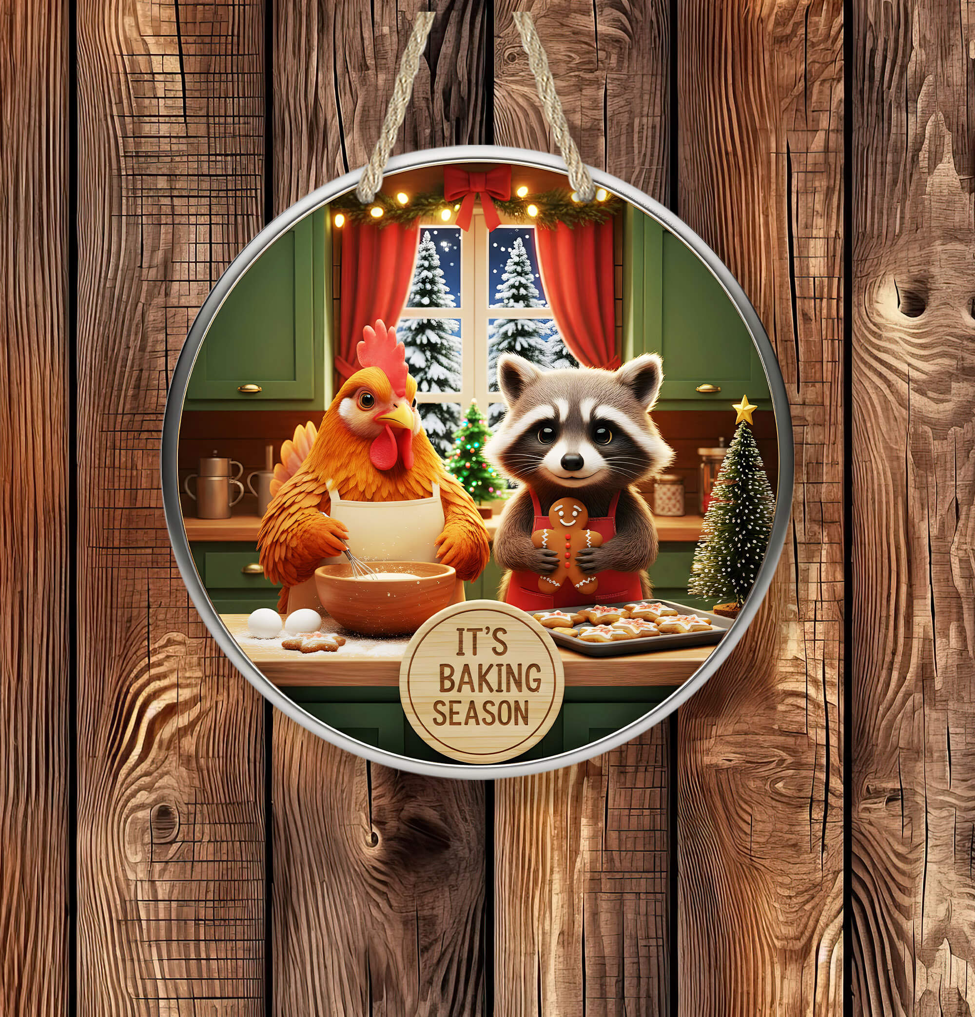 It’s Baking Season Sign – Christmas Kitchen Decor – Raccoon & Chicken Holiday Baking