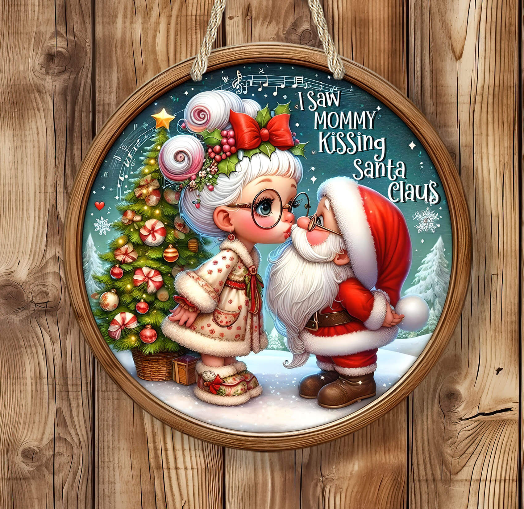 🎄 Bring laughter and nostalgia to your holiday décor with this adorable “I Saw Mommy Kissing Santa Claus” 12" Christmas Sign! Perfect for lovers of classic Christmas carols, cozy farmhouse charm, and a whimsical vintage aesthetic.
