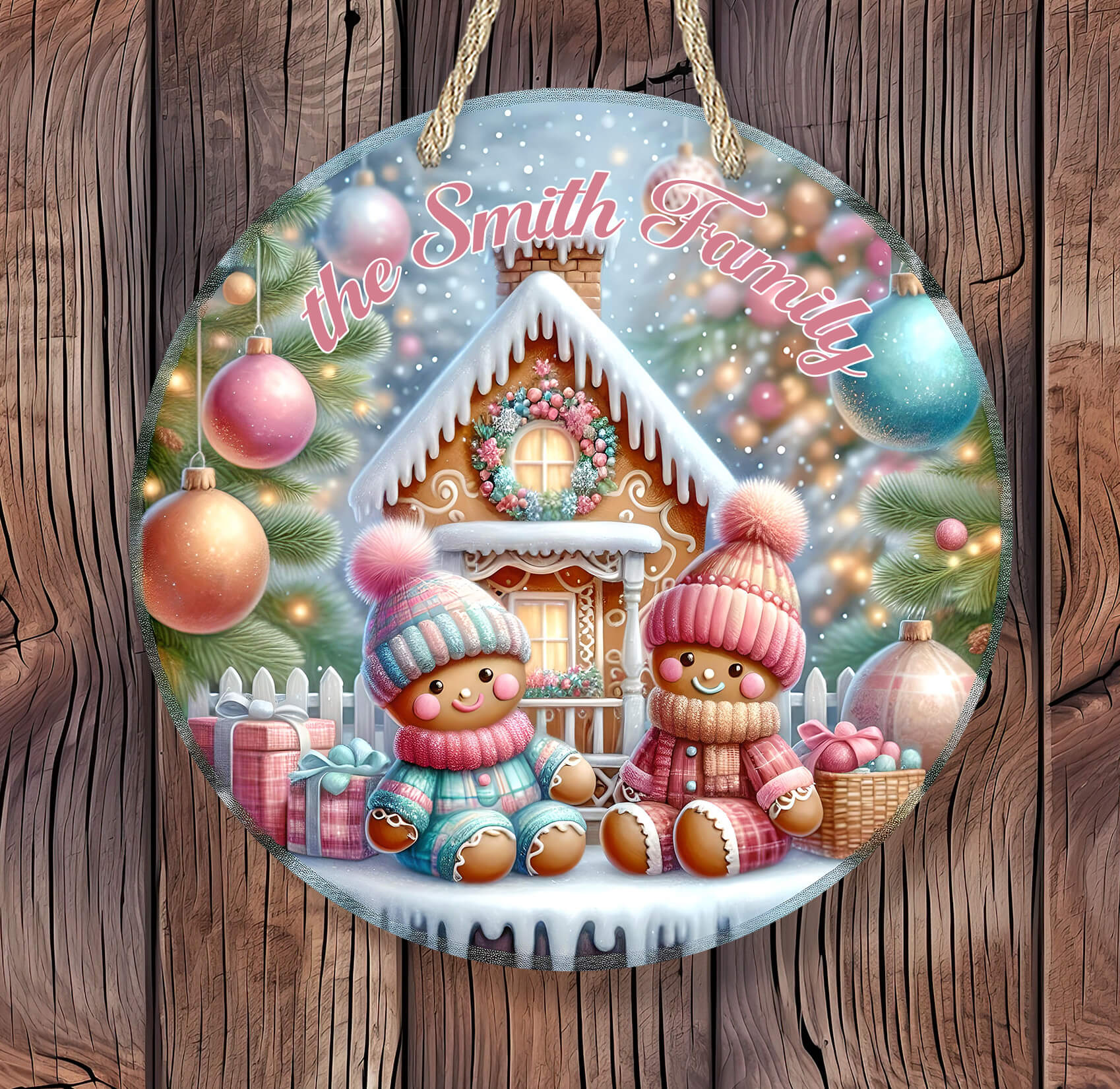 Add your family name, holiday greeting, or a short phrase to make it truly unique. Printed with sublimation clarity on a rustic wood-style look background for a cozy, vintage feel.