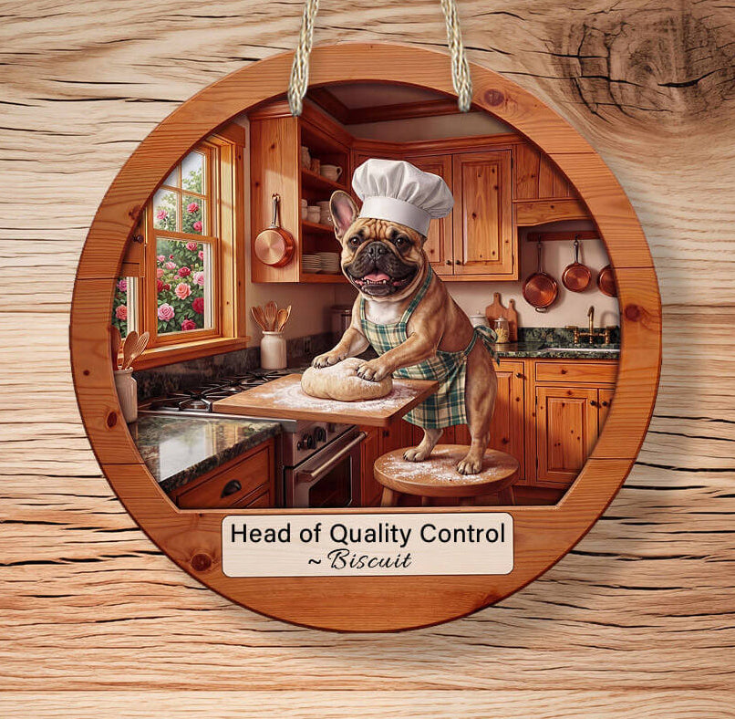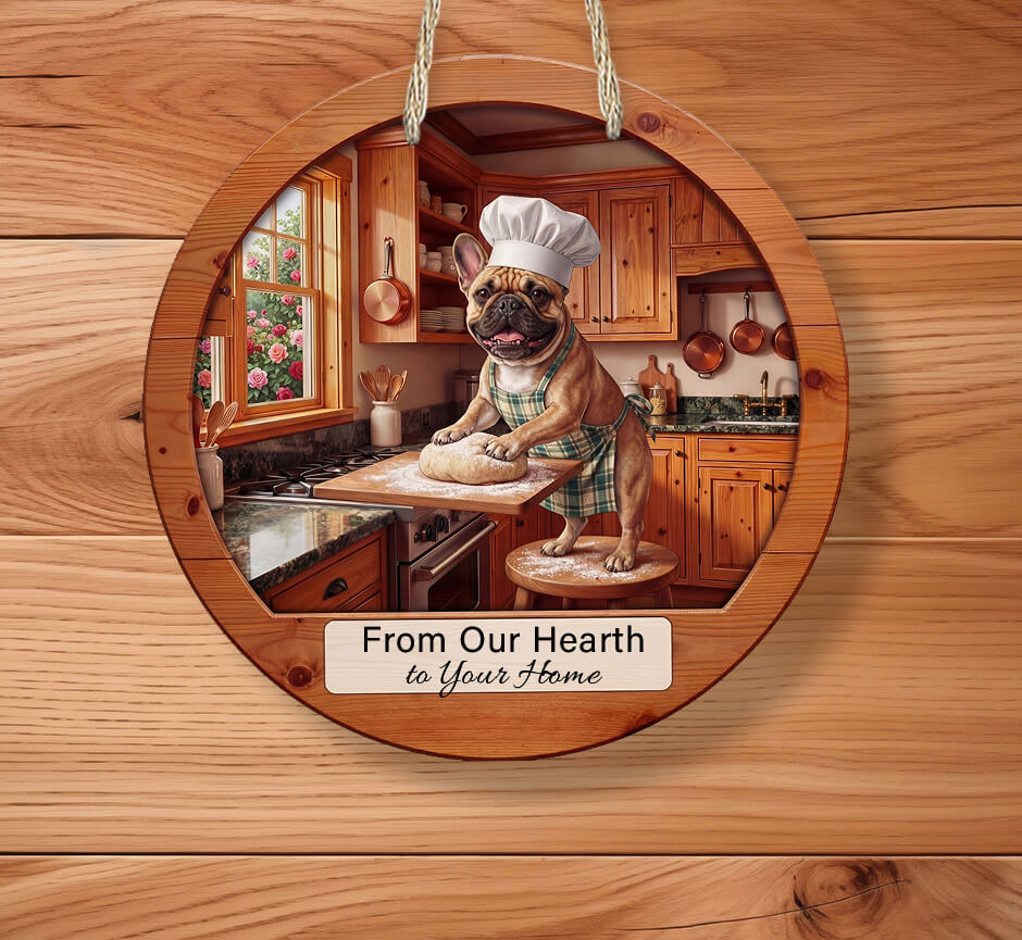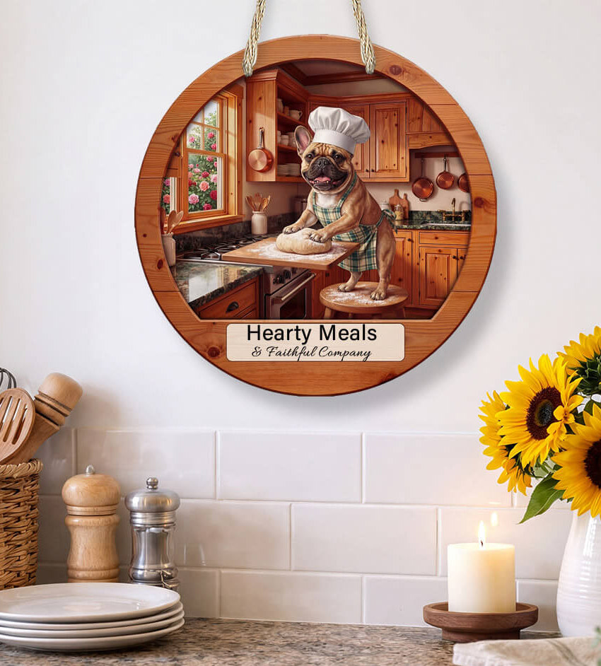 This rustic French Bulldog kitchen sign is designed for dog lovers who believe the heart of the home includes a loyal companion underfoot. Featuring a farmhouse-inspired design and personalized details, this sign makes the perfect statement piece for kitchens, dining rooms, cabins, or cozy homes.