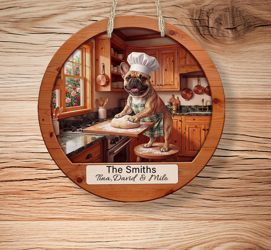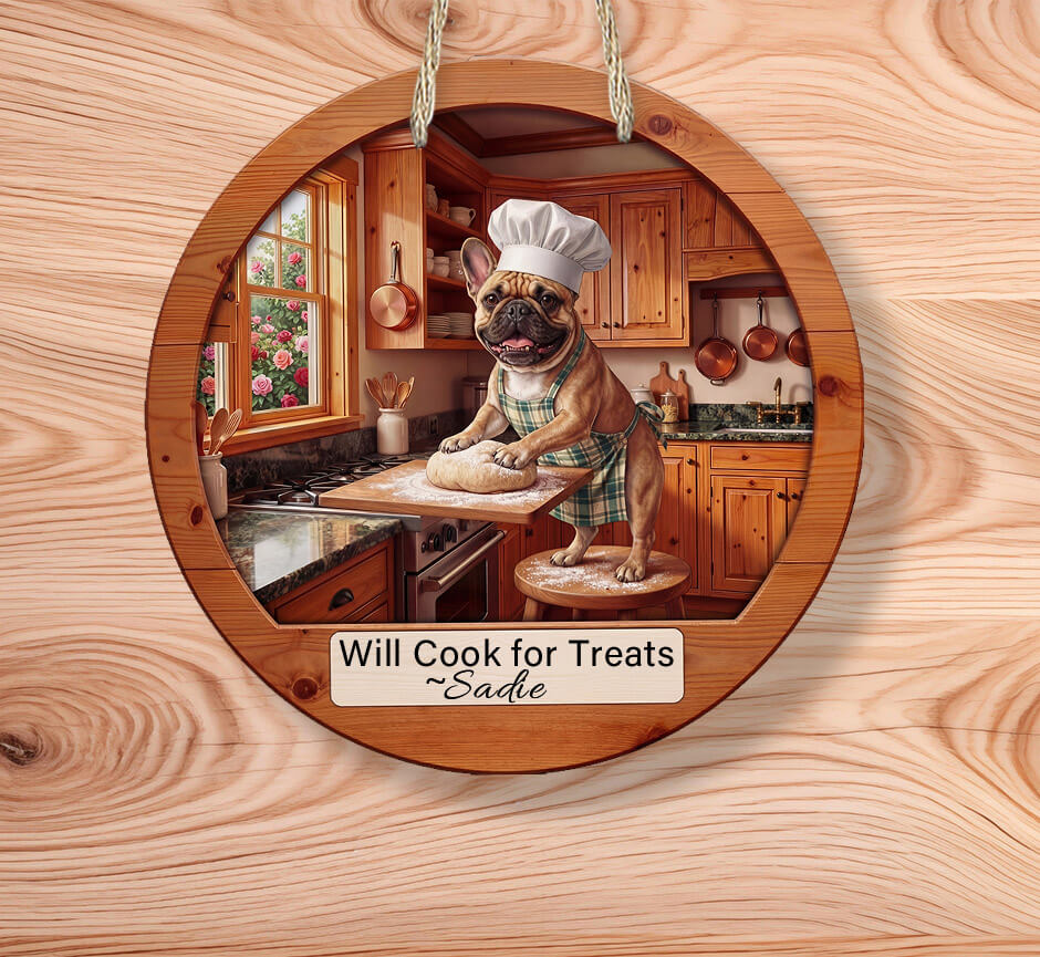 Add charm and personality to your kitchen with a Personalized French Bulldog–inspired rustic sign made for true dog lovers.