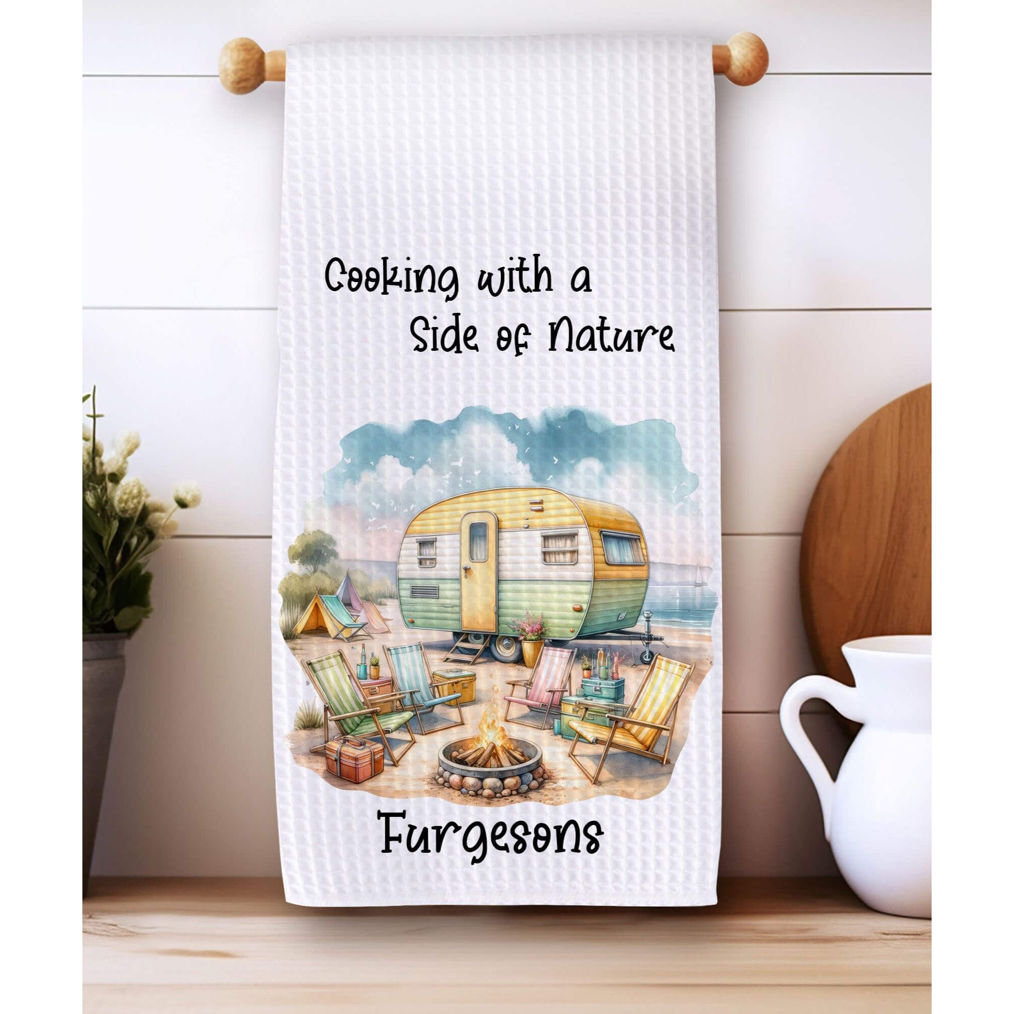 Whether you're grilling under the stars or prepping dinner at your camper, this towel is the perfect blend of function, fun, and personalization — a thoughtful gift for full-time RVers, camping families, and outdoor chefs!
