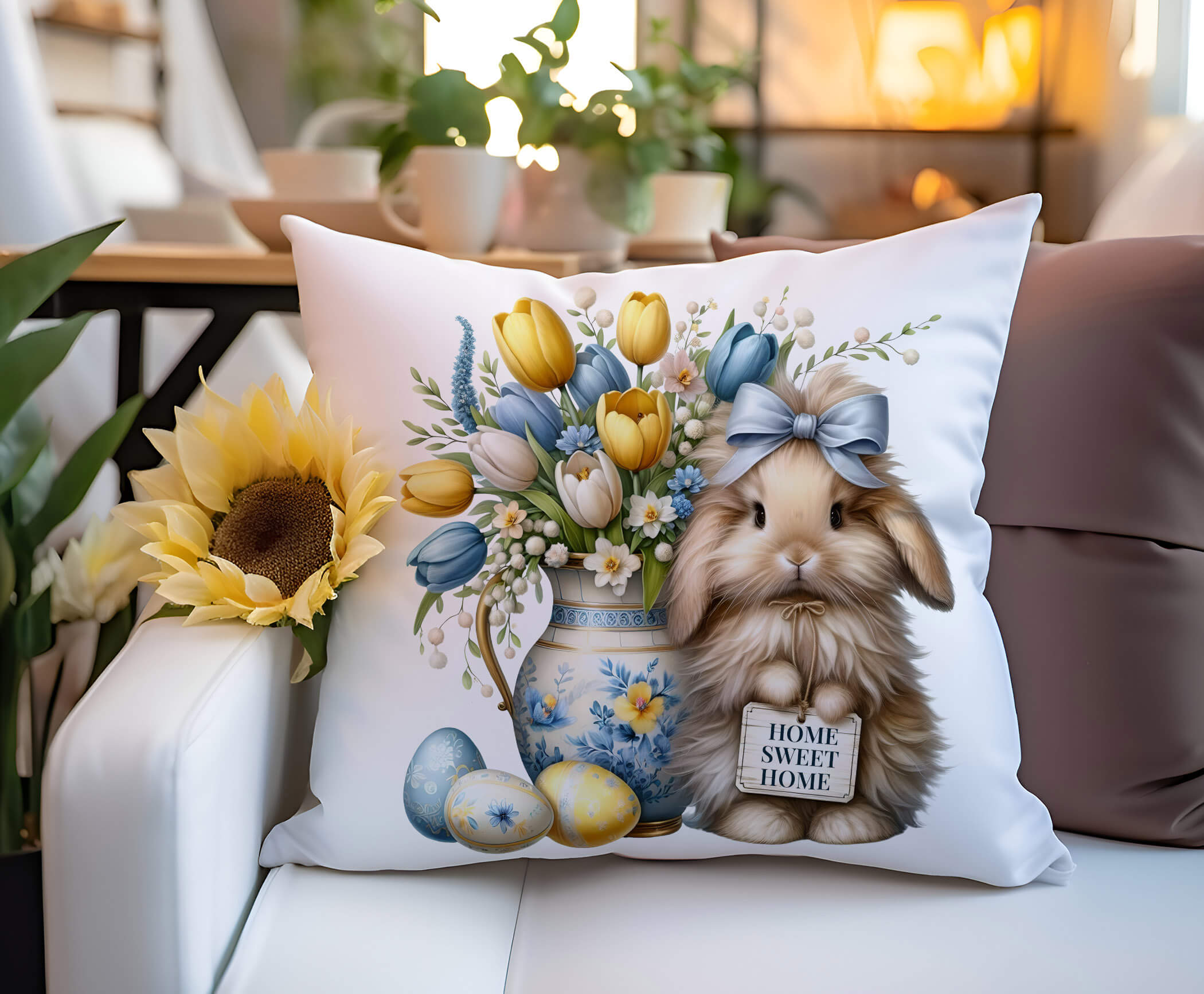 This farmhouse-style Easter pillow adds warmth and charm to: