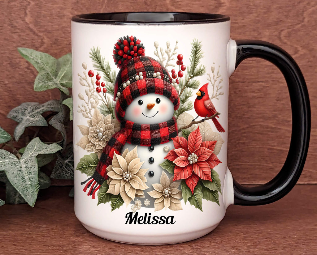 Cozy up this winter with our Personalized Snowman Christmas Mug, the perfect heartwarming gift for coffee lovers, holiday hosts, and festive decorators! Featuring a cheerful snowman in a red plaid hat, surrounded by lush poinsettias, snowy pine branches, and a bright red cardinal β this mug brings holiday cheer to every sip. Customize it with any name for a one-of-a-kind keepsake that spreads warmth and love.